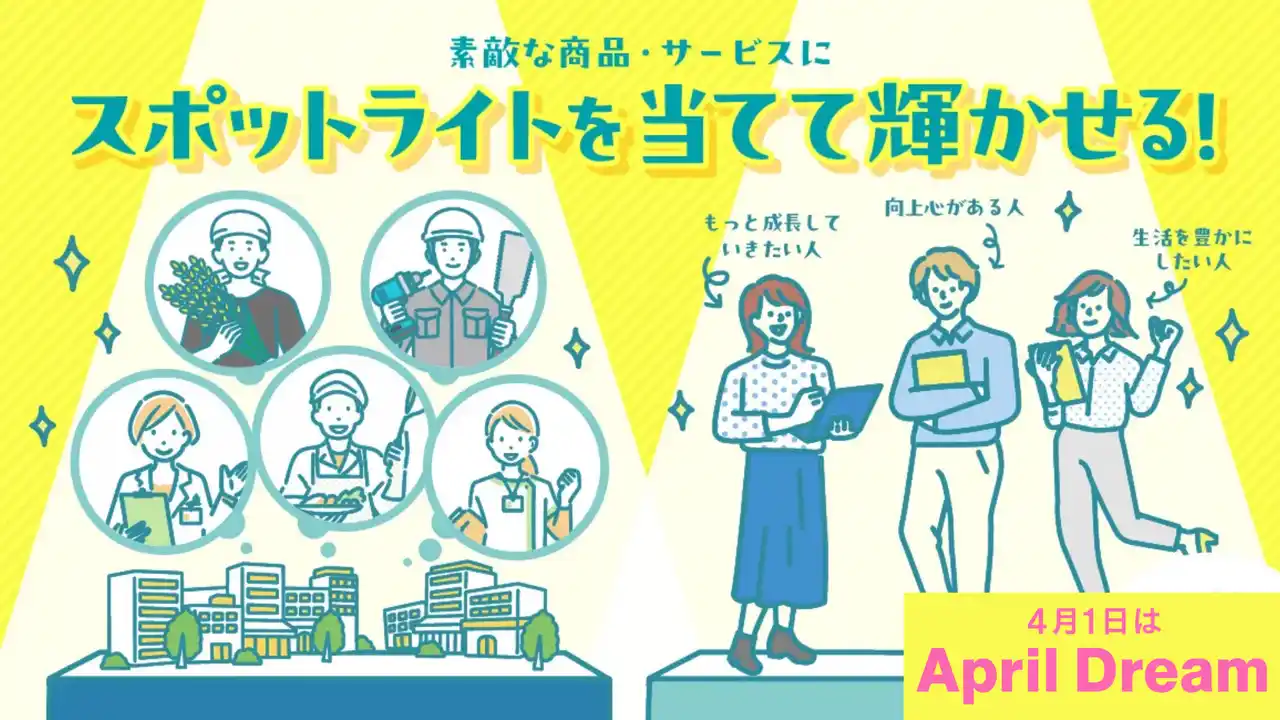 合同会社スポットライトは、4月1日を単にウソをつく日ではなく、未来の夢を語る日に変える「April Dream」に賛同しています。私たちの夢は、夢や自己実現に向けて邁進する人と、まだ見ぬ素晴らしい価値にスポットライトを当て、世界中を輝かせることです。 |
