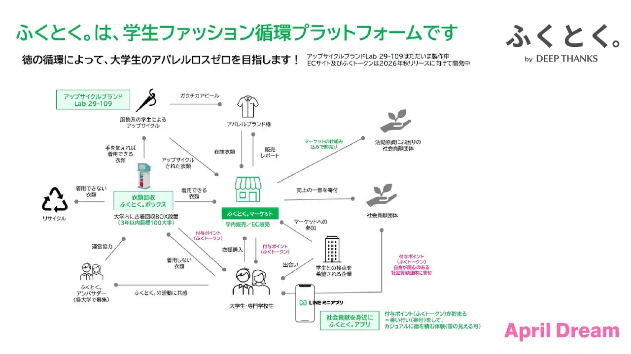 『ふくとく。』は、【回収 → 循環 → 創造 → 還元】という一連の流れを一つの仕組みとして実装しています。 |