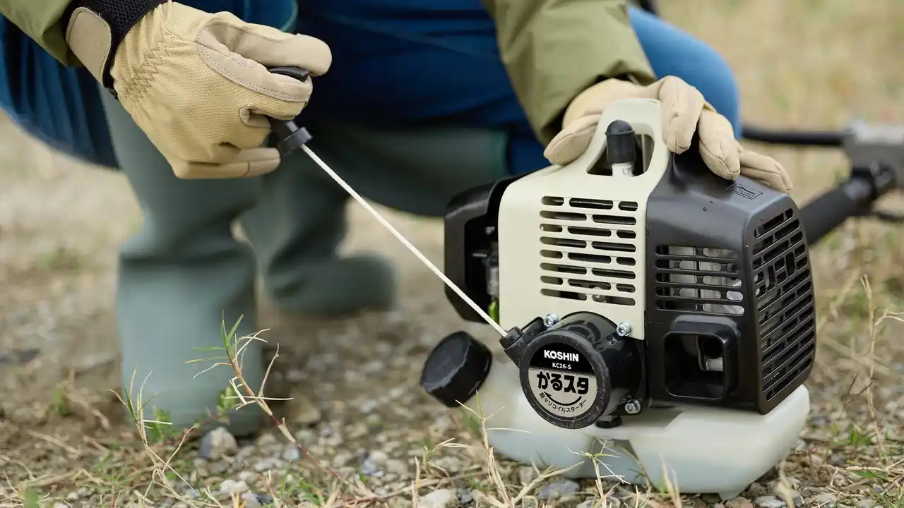 これらのお声を反映し、エンジン始動が簡単で、高齢者や女性の方にもエンジンがかけやすい “かるスタ” エンジンを開発いたしました。このエンジンを搭載した草刈機は他社同等品と比べ39%(*1)エンジン始動が軽い力でできるようになっています。 |