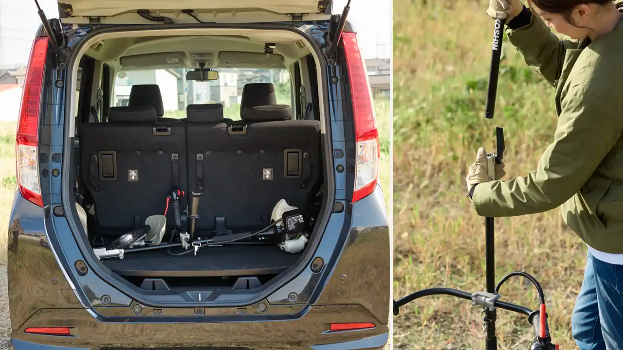 軽トラックが無くても草刈機を運ぶことができて便利です。 |