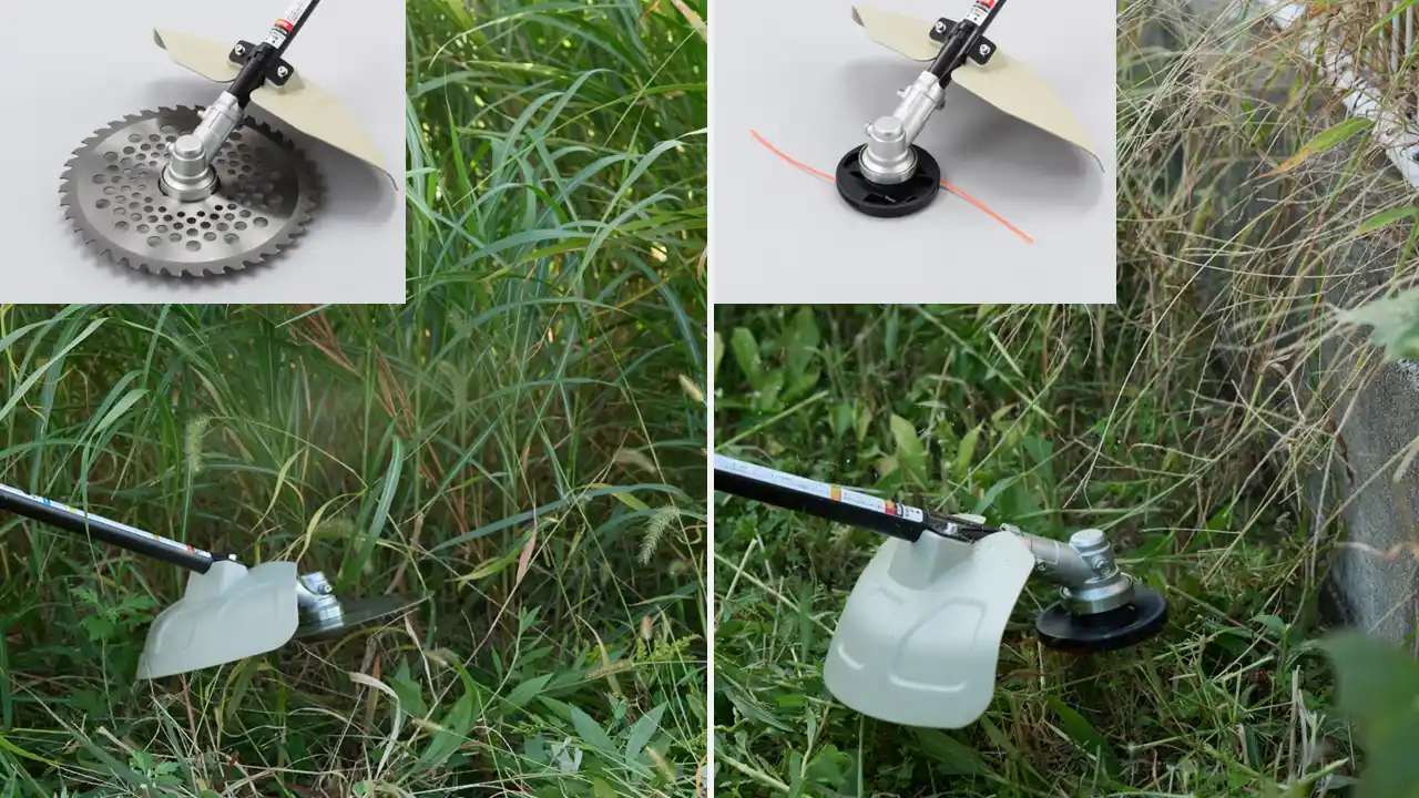 左:広い場所(チップソー)、右:障害物のある場所(ナイロンカッター:別売) |