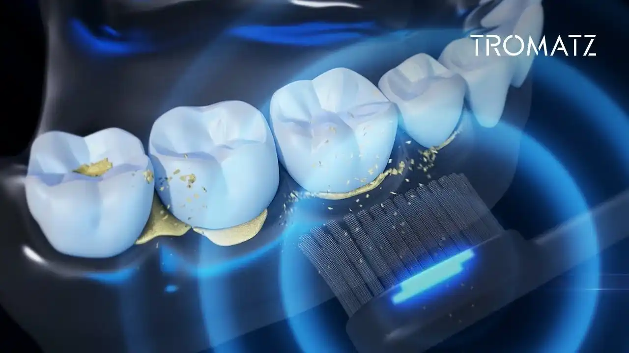 従来の歯ブラシは歯の表面の汚れを「取る」ことを目的としていますが、TROMATZ(トロマツ)が考えているのは、その次の領域です。TROMATZ は、歯の表面を物理的にこすって汚れを“取る”のではなく、目に見えないバクテリア膜(バイオフィルム)を分離除去し、口内環境自体を根本的に“改善”するという発想で開発された「Total oral care device」です。 |