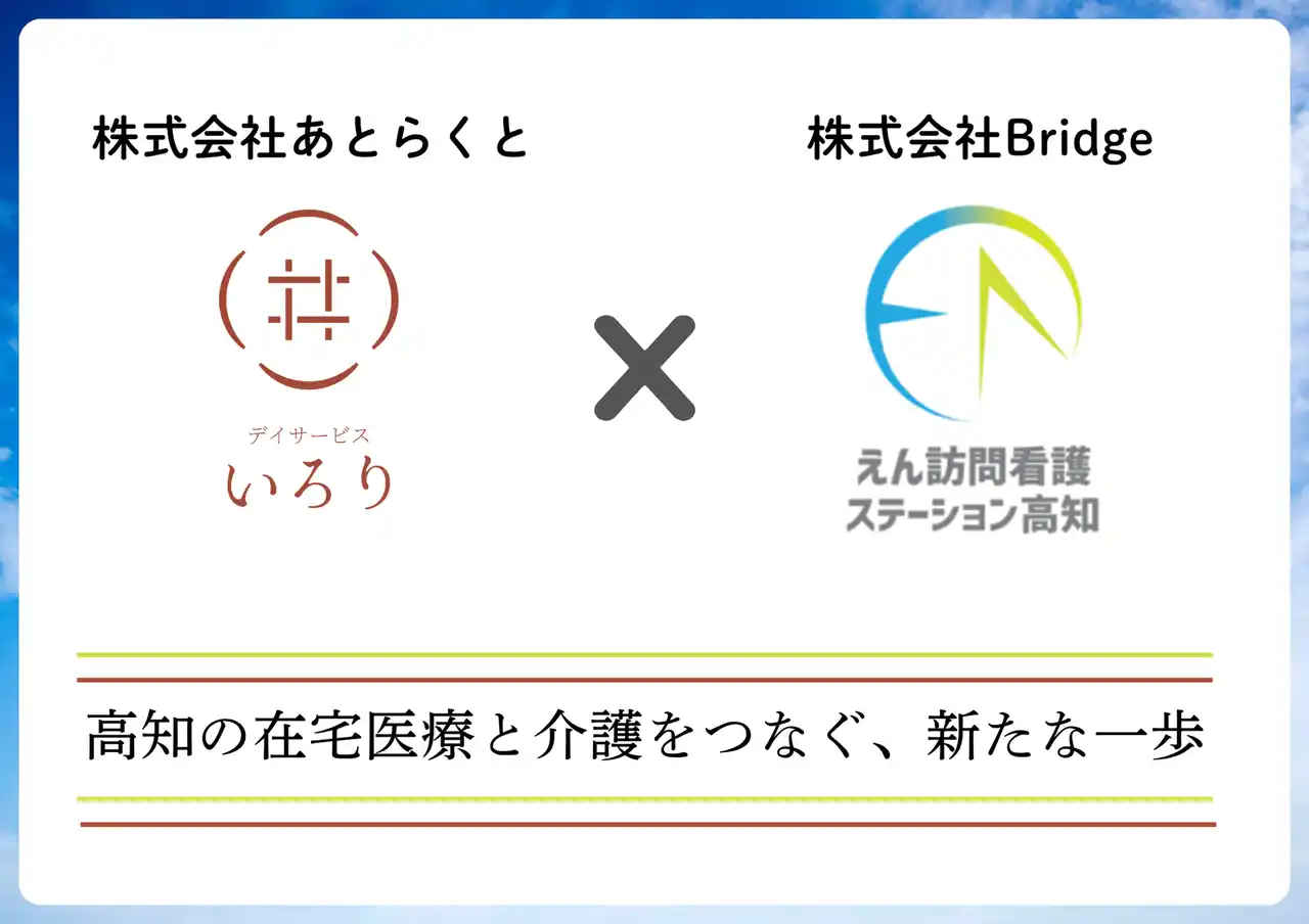 株式会社Bridge(本社:高知県高知市、代表取締役:鳥谷将由、以下「Bridge」)は、2026年3月31日付で、デイサービス「いろり」を運営する株式会社あとらくと(本社:高知県高知市、以下「あとらくと」)の株式過半数を取得し、子会社化いたしました。これにより、Bridgeが展開する「えん訪問看護ステーション」と、あとらくとが運営する「デイサービスいろり」の連携を強化し、高知県内における在宅医療と介護の一体的な支援体制づくりを進めてまいります。 |