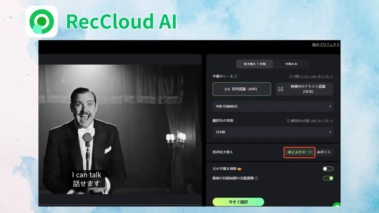 デフォルトでの音声クローン適用:ユーザーの手間を削減し、高品質な翻訳音声を自動生成 |
