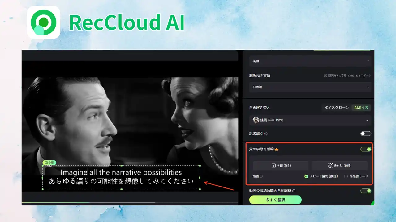 RecCloudの動画翻訳機能は、単なる字幕翻訳を超え、完全な音声クローンと高度なOCR技術を統合した総合的な動画ローカライズソリューションです。 |