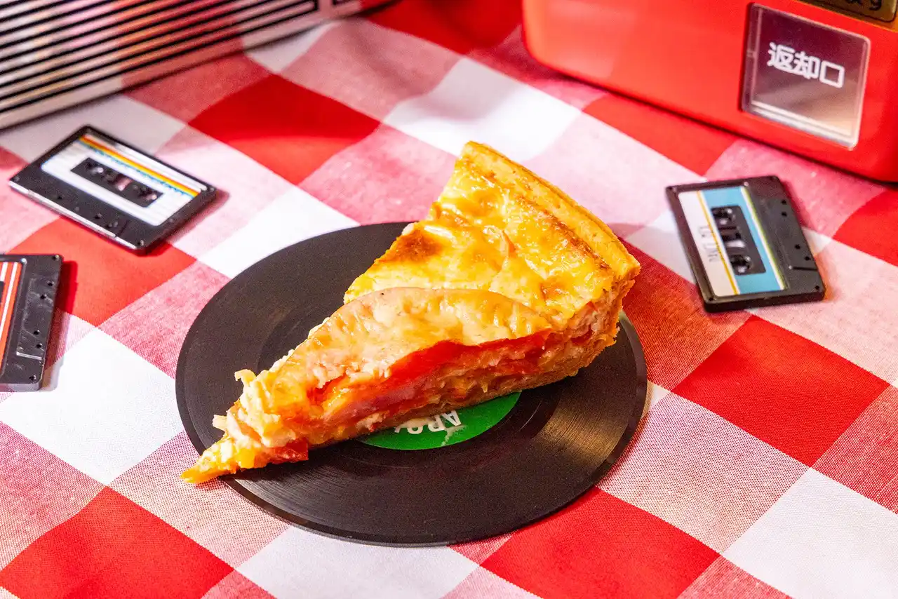 喫茶店の定番メニューであるナポリタンの味わいをキッシュで表現しました。パプリカ、トマト、玉ねぎを使用し、ナポリタンを思わせるどこか懐かしい風味に仕上げています。卵のやさしいコクとトマトのほどよい酸味が調和した一品です。 |