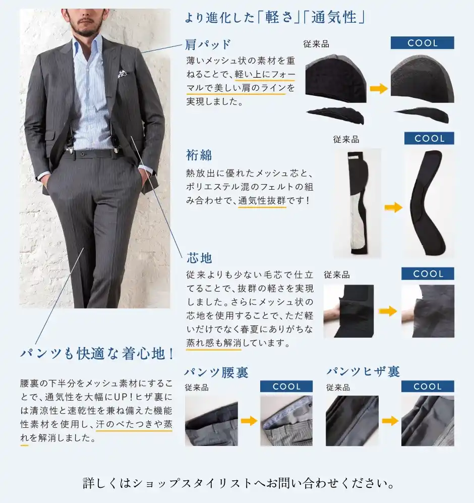 “高い” “古くさい” “入りづらい” などと思われがちなオーダースーツ業界を根本から変えるべく、リーズナブルな価格でのご提供や、ファッション性を重視した豊富なスーツモデルや生地のご用意、お洒落な空間デザインなどの工夫を重ねて、ブランドのコンセプト「ENJOY ORDER!」のもと、オーダースーツを通してビジネスマンの皆様を応援することを追及し続けています。 |
