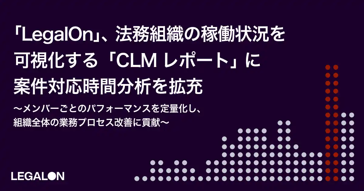 株式会社LegalOn Technologies(本社:東京都渋谷区、代表:代表取締役 執行役員・グループ CEO 角田 望、以下:LegalOn Technologies)が提供する、法務特化型AIエージェント搭載のProfessional AI for Legal「LegalOn」(https://www.legalontech.com/jp/)は、法務組織の稼働状況を可視化する「CLMレポート」を強化しました。案件対応時間やメンバーごとのパフォーマンスを定量化することで、データに基づいた客観的な組織マネジメントを支援します。 |