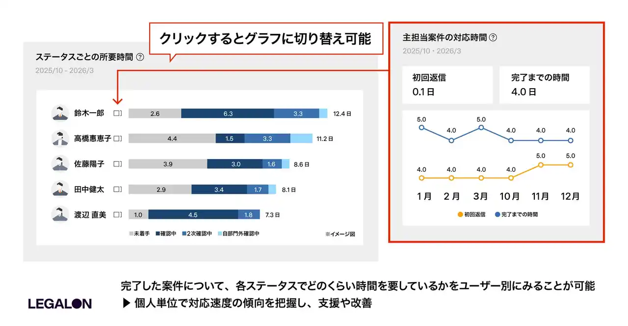 ■法務組織全体の稼働状況の可視化に加え、案件対応時間の把握も可能に |