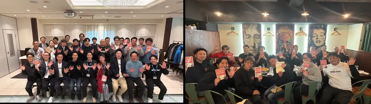 株式会社スマイルカンパニー(本社:埼玉県川越市、代表取締役:山野俊介)は、代表・山野俊介の初著書『車買取のスマイルカーズはどうして3年で100店舗をこえて伸び続けているのか?』(扶桑社)の刊行を記念し、全国のスマイルカーズ加盟オーナー向けに「書籍お渡し会」を開催しました。 |
