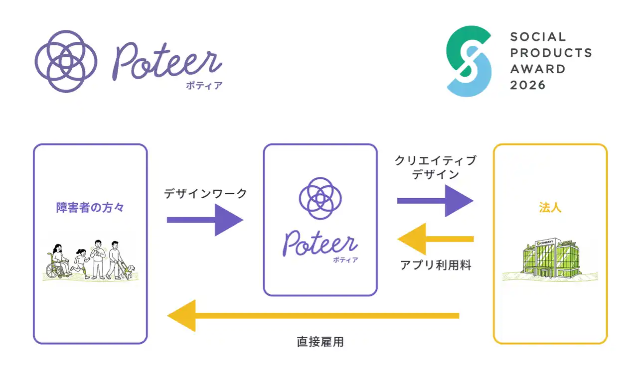 本アワードでは、Poteerを用いて生成されたクリエイティブ作品を募集し、優秀作品に対して賞金総額10万円を授与します。賞金は、作品のインスピレーション源となった障害者クリエイターへ全額還元されます。選ばれたクリエイティブは、デジタルな振る舞いが今後展開するサービスのプロモーション素材として利活用されます。企業の実務で活用されることで、生成AIとクリエイターを結ぶ新しい価値循環を実証します。