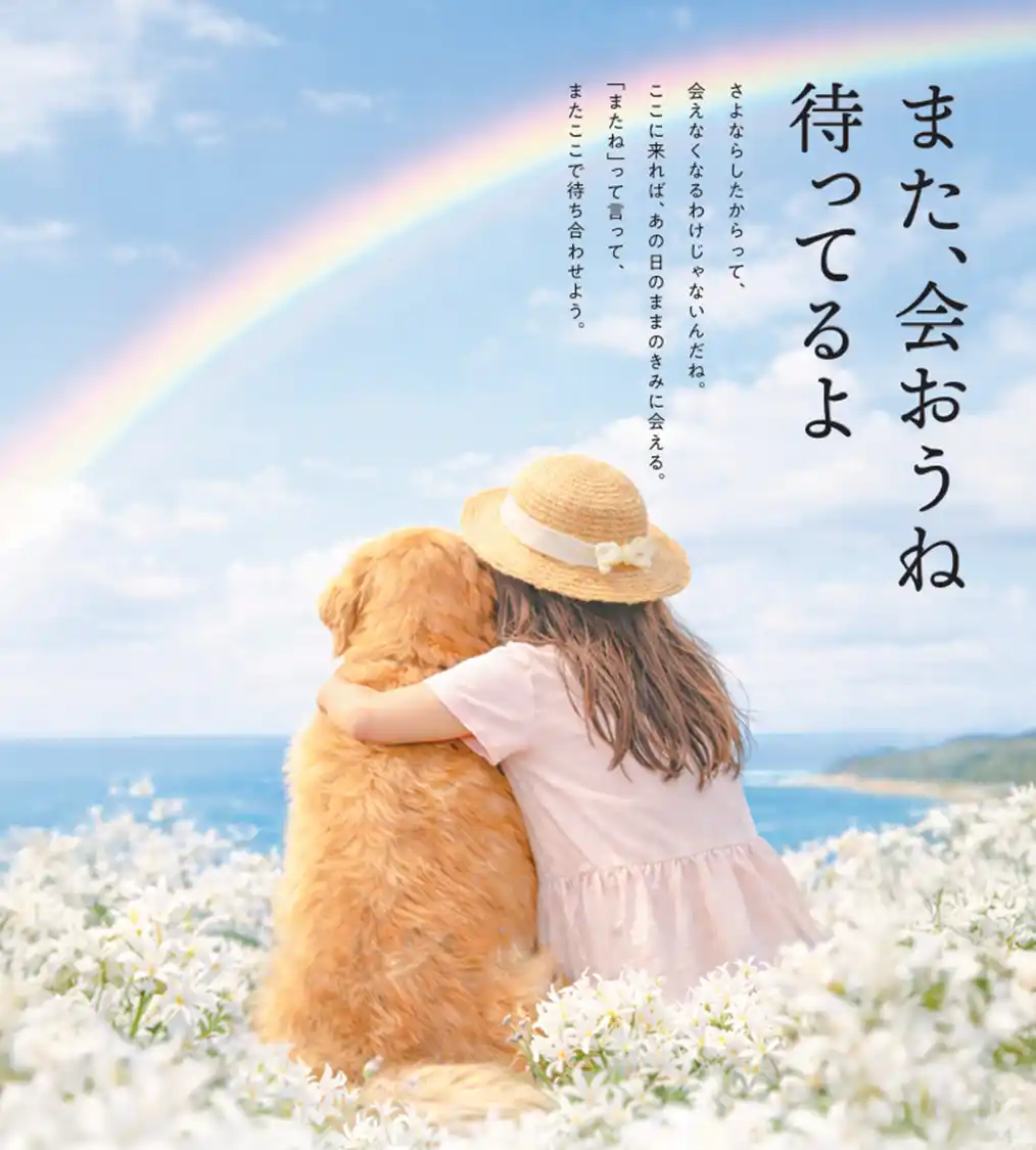 公益財団法人新宮霊園(所在地:福岡県糟屋郡新宮町、理事長:伊藤信勝)は、2026年4月4日(土)、多様化する家族の形と供養のニーズに応える新区画「虹の丘」をグランドオープンいたします。本区画の最大の特徴は、日本初※となる「3Dホログラム」技術を活用したペット供養です。生前の姿を立体映像として再現するこの取り組みは、従来の「場所」としての供養に、「再会」という体験価値を付加するものです。また、15万平方メートル の敷地には、福岡近郊では希少な本格的「ペット専用墓」や、飼い主と同じ区画に眠れる「ペット共葬樹木葬」を備え多角的な供養の選択肢を提供いたします。 |
