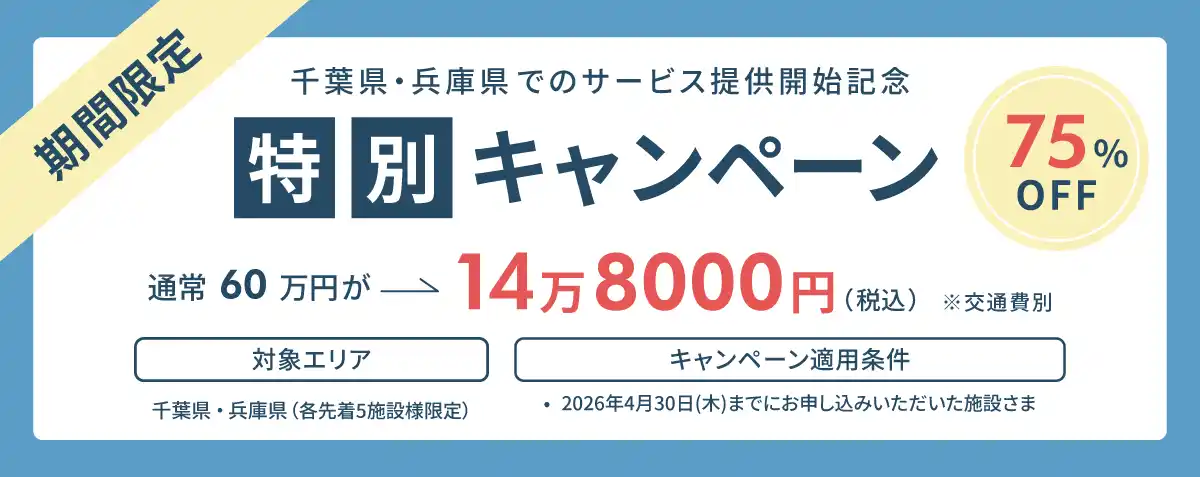 4月中にお申込みいただいた施設様限定 ※応募状況に応じて本キャンペーンは早期終了または延長する場合があります。 |