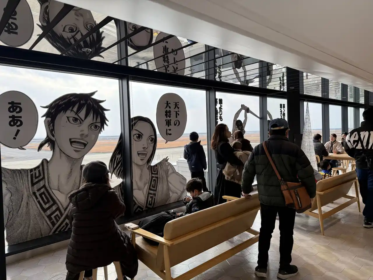 ~佐賀の火を絶やすでないぞォ。~」プロジェクトを実施してきました。本コラボでは、佐賀空港の愛称を「佐賀キングダム空港」としたほか、館内装飾や「佐賀キングダム空港特別展」、有明海沿いの防波堤にコミックス1巻から77巻までの全ページを掲出した「キングダム読破堤(どくはてい)」、古湯温泉でのキャンペーンなど、様々な企画を展開してきました。その結果、各企画の参加者は約2ヶ月間で延べ約16万人を記録しました。 |