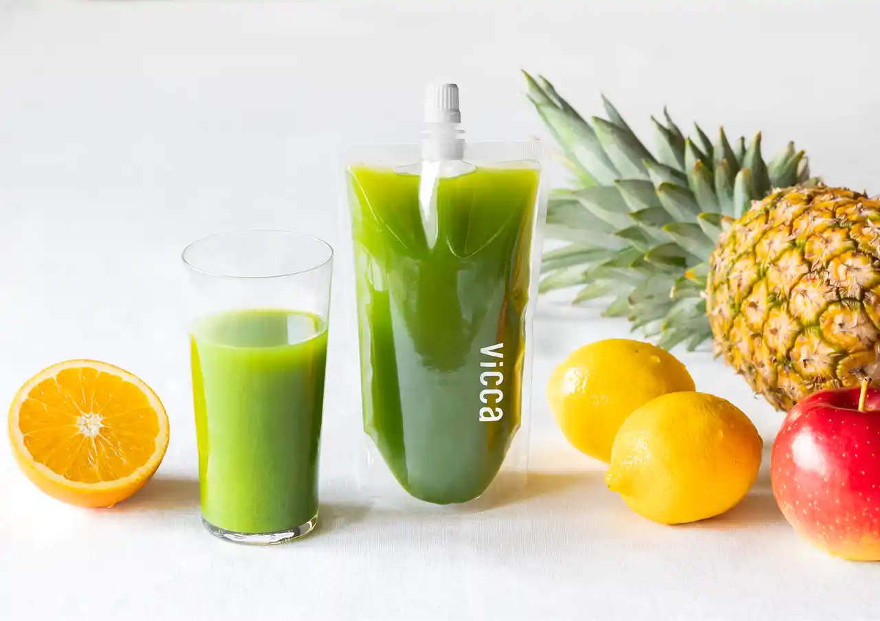 『Vicca』は、現代人の健康的なライフスタイルを実現するため、「フルーツを飲む」という新しい健康習慣を提案し、“フルーツウェルネス”の実現を目指す“ダブルプレスジュース”ブランドです。1本で1日に必要なフルーツ約200gを手軽に摂取できるジュースを、冷蔵便による定期配送サービスでご自宅までお届けします。 |