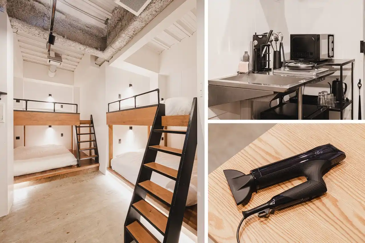 最大8名まで宿泊可能な広々としたプライベート空間。簡易キッチンを備えており、自由度の高いアパートメントスタイルです。 |