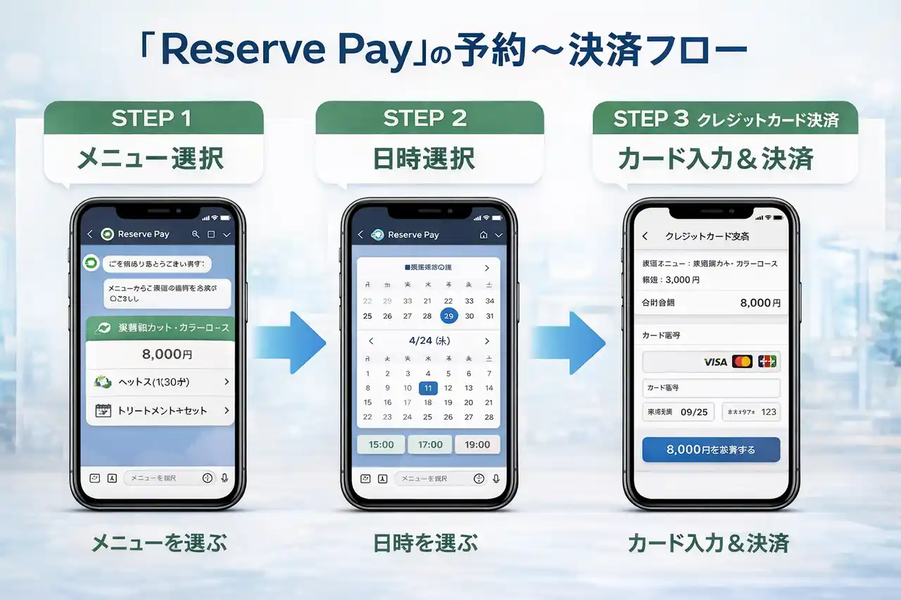 ※「予約 → メニュー選択 → 決済」図 |