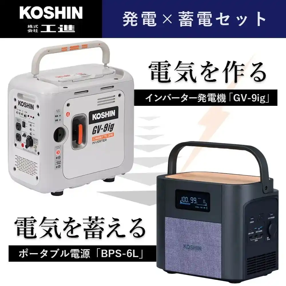 防災のセレクトショップ「セイショップ」では、インバーター発電機「GV-9ig」、ポータブル電源「BPS-6L」の他にソーラーパネルなど合計5つのKOSHIN商品の取り扱いを開始いたしました。 |