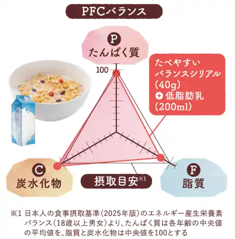 日食は、シリアルをパンやご飯に続く「第3の主食」として位置づけています。 |