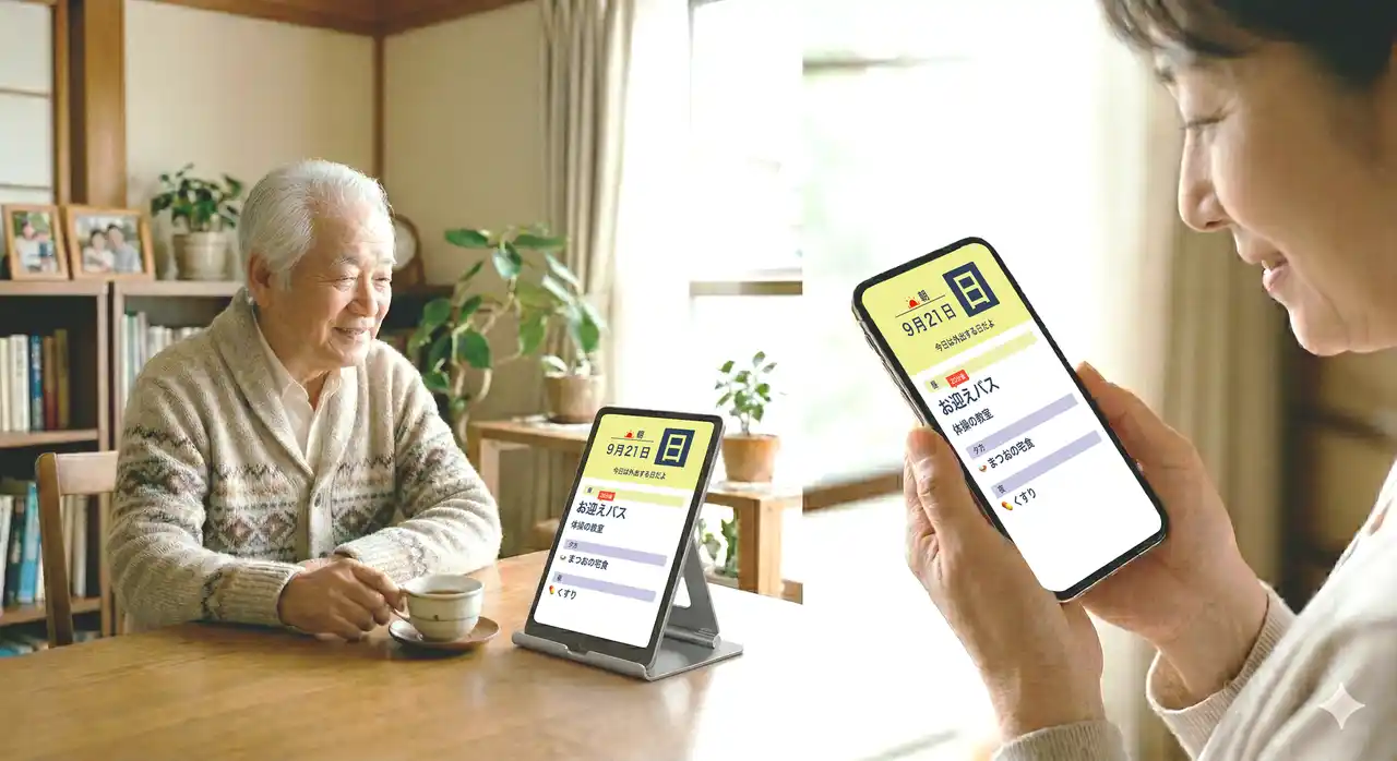 代わりに声かけ: 家族が入力する予定は、親御さんにとっては「この時間にこれをしてね」という優しいガイド。離れていても、隣で声をかけているような安心感を作り出します。 |
