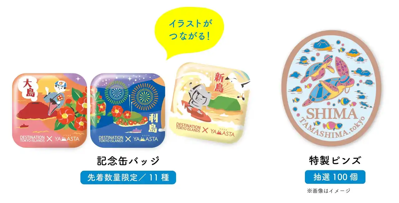 | チェックインポイントでスタンプを獲得すると、該当の島の来島記念缶バッジがもらえます。さらに、複数の島を巡って達成トロフィーを獲得すると、抽選で当たる特製ピンズにご応募いただけます。 | |||