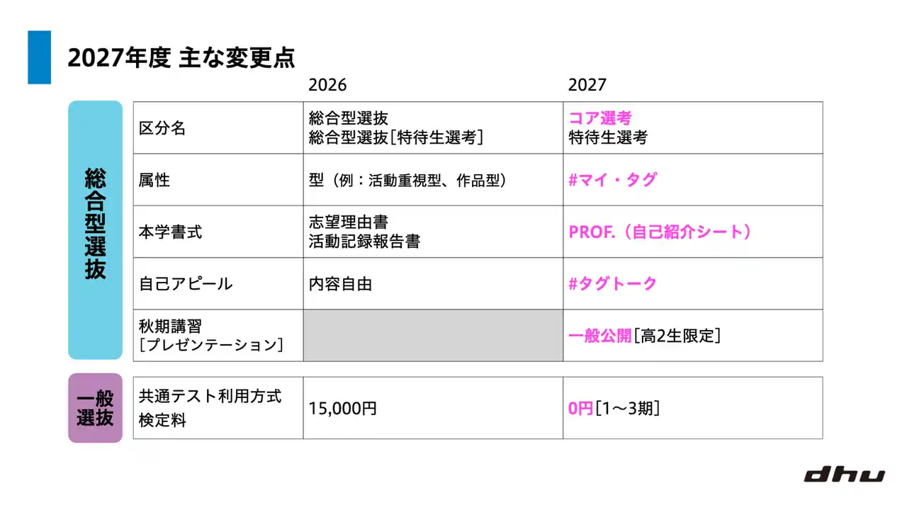 総合型選抜で「#マイ・タグ」を導入|公募制推薦【異能発掘】などあたらしいDHUの入試に注目!