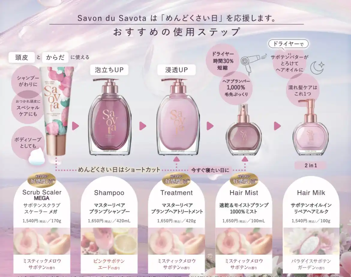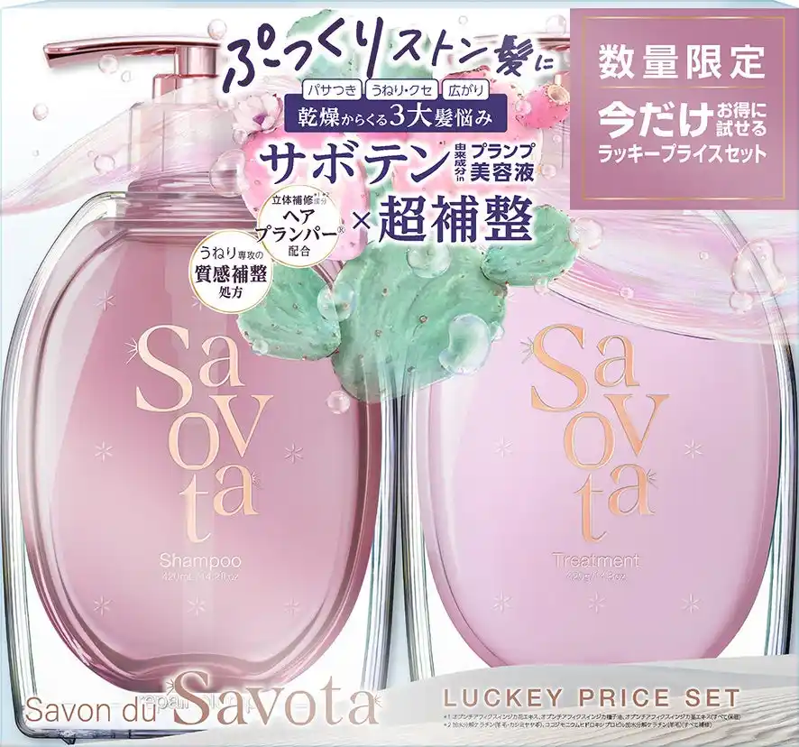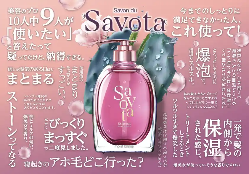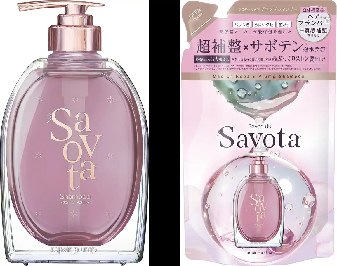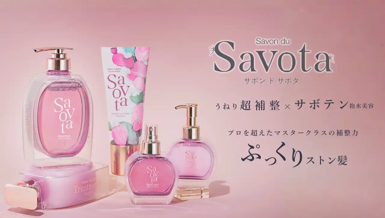 アンド・ナイン株式会社/(本社:東京都港区、代表取締役社長CEO:加藤修)は、“めんどくさい”を応援するサボテンヘアケアブランド・Savon du Savota(サボンドサボタ)の新シリーズとして、乾燥による三大髪悩み「パサつき、クセ(うねり)、広がり」に特化した新製品『サボンドサボタ マスターリペアシリーズ』を2026年4月中旬より全国のドラッグストア・バラエティショップにて発売いたします。 |