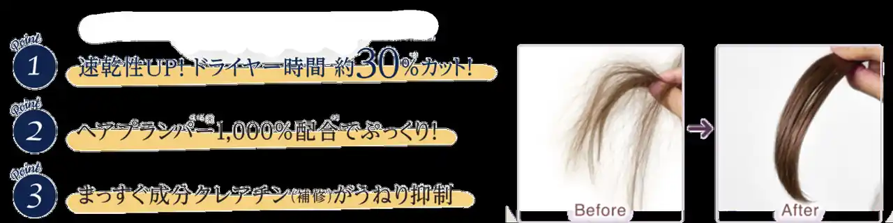 「強化型ヘアプランパー(R)*¹*²」&「うねり専攻処方」でぷっくりストン髪へ。 |