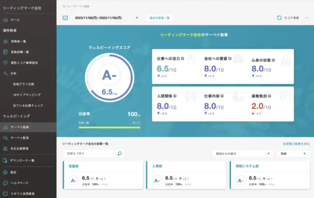 | -社員のメンタル状態を可視化し、性格をもとにアドバイスをすることでウェルビーイングを実現「ミキワメAI ウェルビーイングサーベイ」 | |||||||||