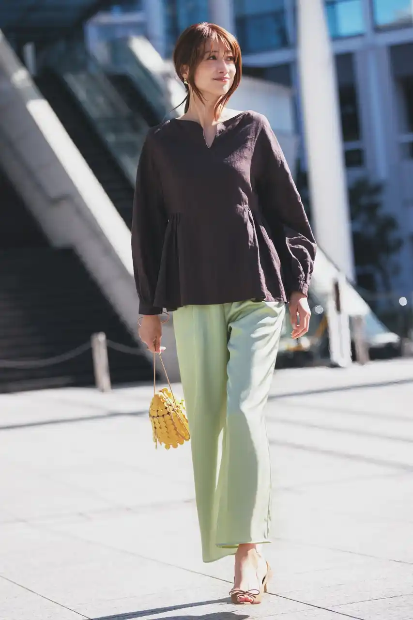 リネンならではの風合いを生かした、ほんのり華やかなブラウス。ペプラムの甘さに、スキッパーデザインのすっきり感を添えて、 こなれた抜け感のある印象に仕上がります。 |