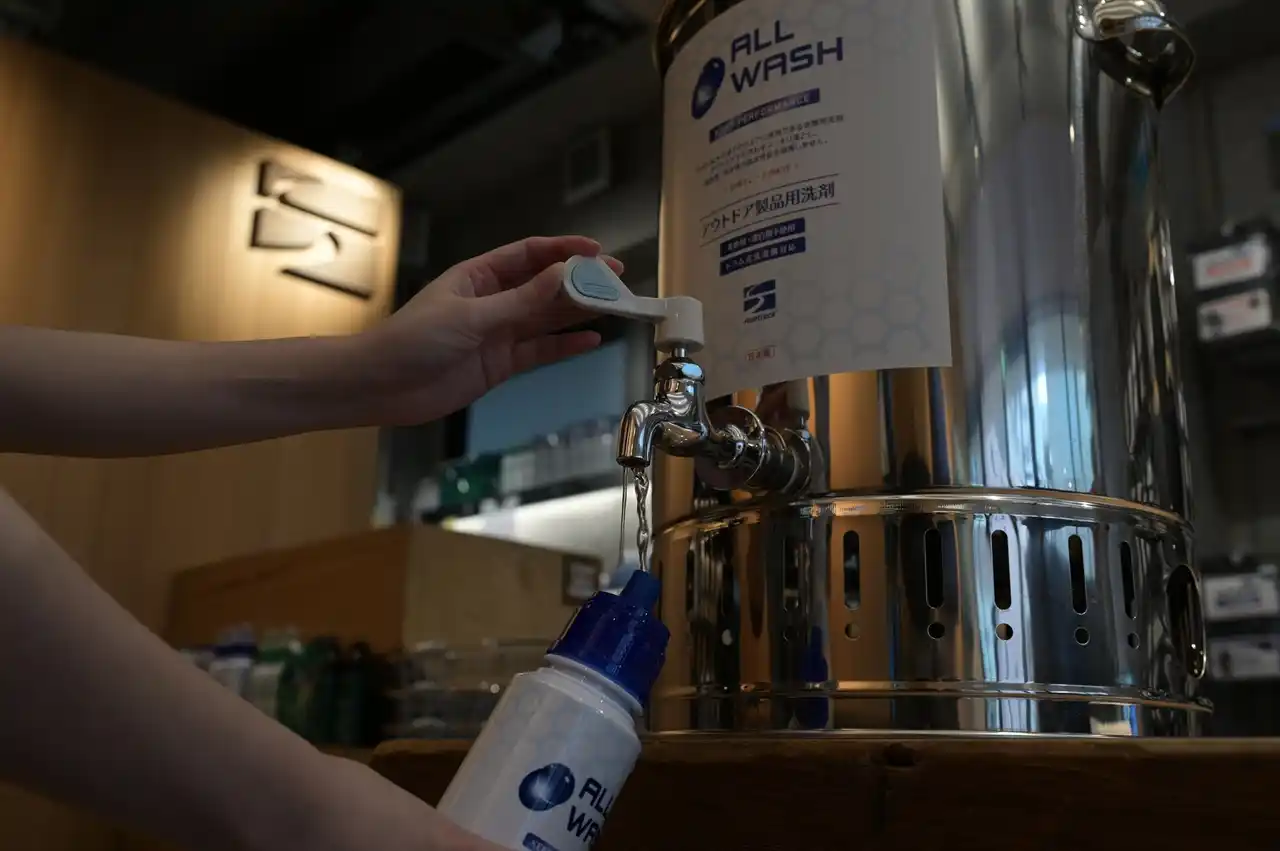 | 毎月10日は、finetrack TOKYO BASEのメンテナンスDAYとなります。4月10日(金)はくじ引き最終日でもあり、「蛇口から注ぐ量り売りDAY」としても実施します。容器をご持参いただくことで、オールウォッシュボトル1本分(最大420ml)を量り売りでご購入いただけます。メンテナンスDAY限定で、15%OFFの販売も予定しております。 | ||||||