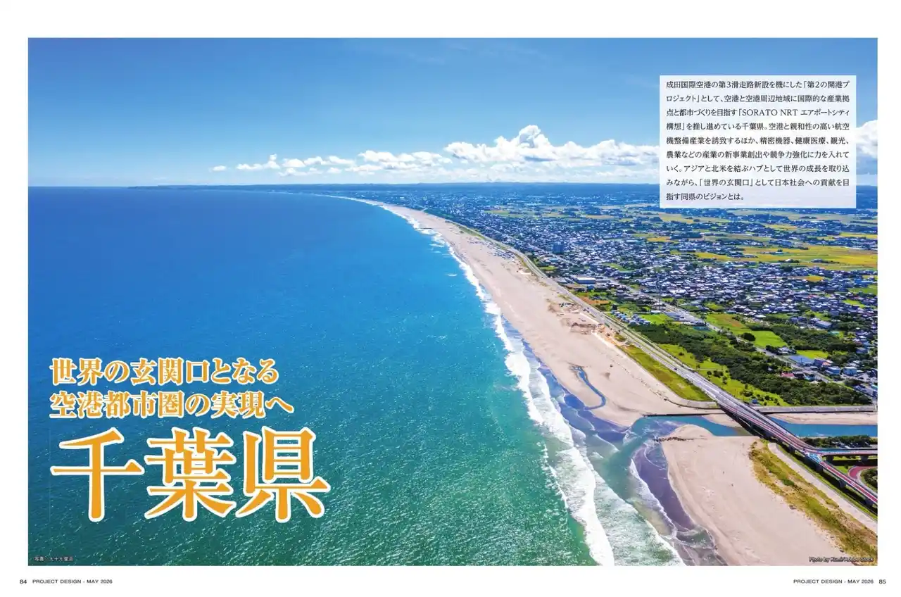 千葉県は、成田空港拡張を核にした「SORATO NRT(ソラト ナリタ)エアポートシティ」構想を推し進めています。アジアと北米を結ぶハブ機能を活かし、国際的な産業拠点と都市づくりを目指すものです。併せて農業振興や臨海部のGX、AI福祉支援、少子化対策も展開。世界の成長を取り込む同県の未来に迫ります。 |