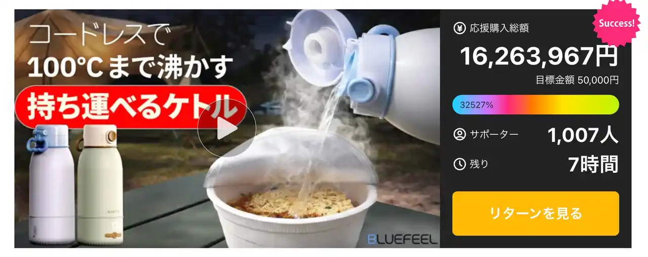 Makuake応援購入金額1600万円突破 |