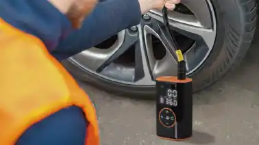 最大120PSIの高出力により、乗用車のタイヤにも対応します。コンパクトながら、しっかりとしたパワーでスピーディーに空気を充填できます。 |