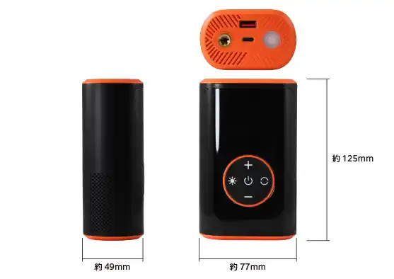 LEDライト機能を搭載しており、夜間のタイヤ交換や暗い場所での作業にも便利です。また、モバイルバッテリー機能も備えており、急なスマートフォンなどの充電も可能です。USB Type-C端子から充電でき、外出先やアウトドアでも活躍します。 |