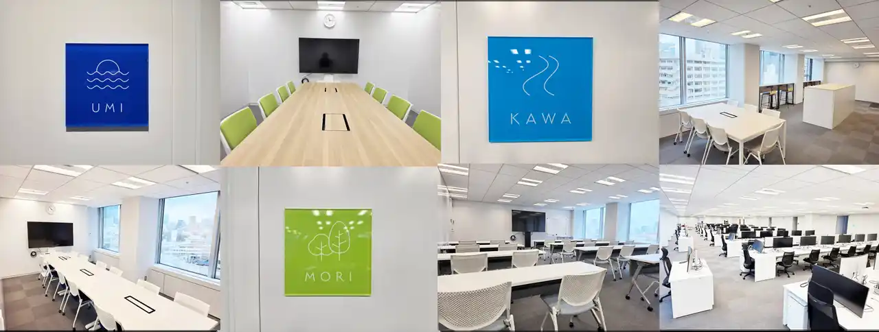 新オフィスでは、対面・オンライン双方のコミュニケーションを円滑にするための設備投資を強化し、フリーアドレス制を導入した執務スペースの拡充に加え、大型のワイドディスプレイや、多人数対応のWeb会議システムなどのITインフラを整えた会議室や、リモート会議に対応できる席を増やします。さらには、多様な働き方やチーム編成に柔軟に対応できるレイアウトを採用し、従業員一人ひとりの生産性向上と快適性を高め、誰もが公平に情報にアクセスできるインクルーシブな環境を整備いたします。今回のオフィス拡張により、部門ごとの機能分担や、フリーアドレス制による柔軟なスペース活用が可能となり、働く人のウェルビーイング向上に寄与するとともに、若手人材の育成機会創出を図ります。 |