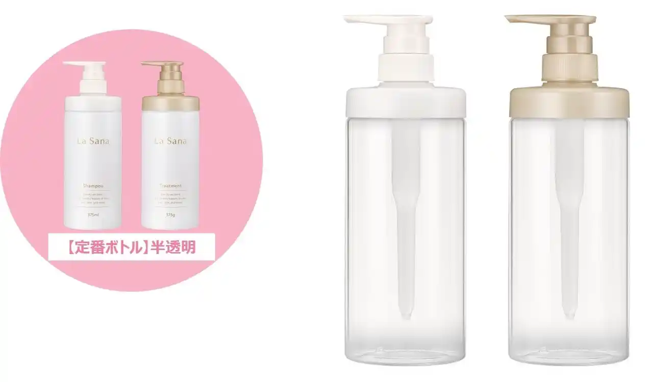 そこで今回、こうしたお客様の声に応える形で、ボディ部分を透明にしたシャンプー・トリートメント専用空ボトルを開発。詰め替え用のデザインを含めて、日々のヘアケアを楽しめる仕様のボトルを限定発売する運びとなりました。ラサーナはこれからも、お客様の声に耳を傾けながらお客様と共に成長するブランドを目指します。 |
