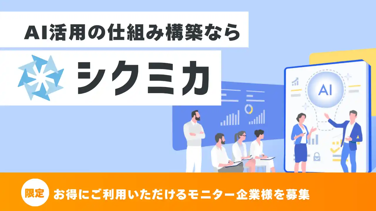 | モニター企業では、実際の業務をもとに「シクミカ」の支援プロセスを導入いただきながら、サービス改善に向けたフィードバックへのご協力をお願いする予定です。 | ||||||||||||||||||