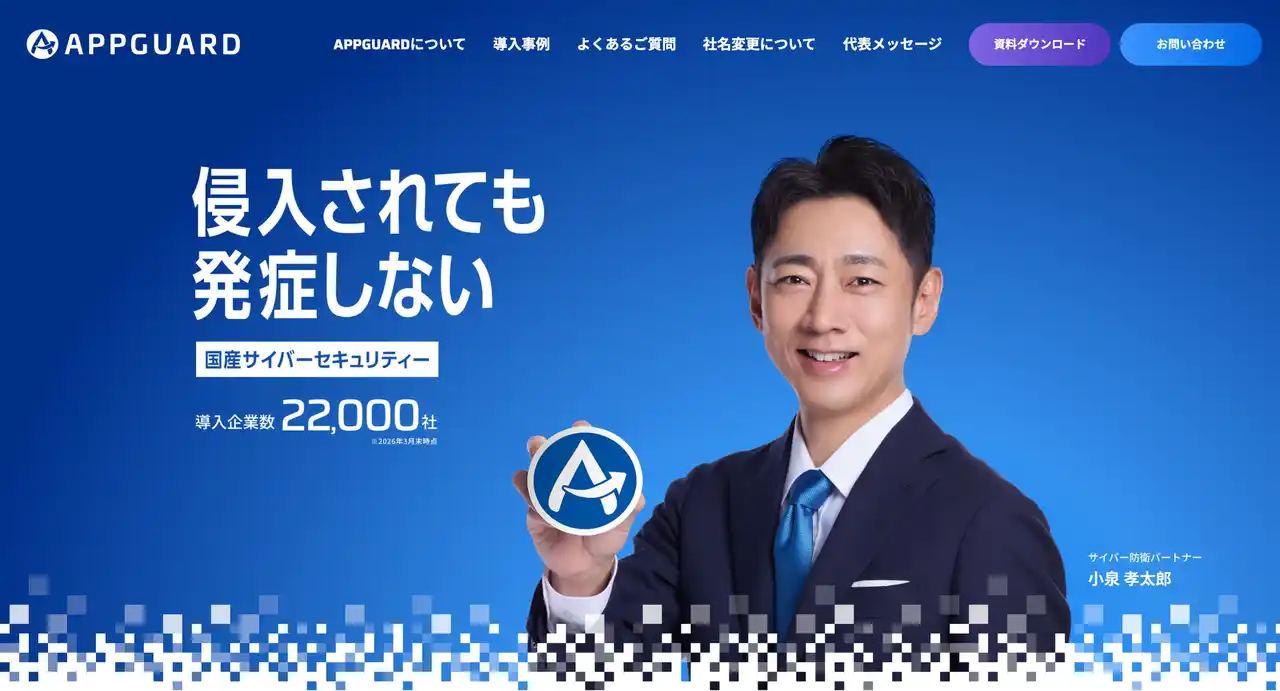 株式会社Blue Planet-works(本社:東京都品川区、代表取締役社長:坂尻浩孝)は、2026年4月1日(水)付で社名を「株式会社AppGuard」へ変更いたしました。 あわせて、俳優の小泉孝太郎さんを「サイバー防衛パートナー」として起用し、コーポレートサイトのデザインも刷新いたしました。さらに、同日には日本経済新聞(朝刊・全国版)へ全面広告を掲載し、社名変更および国産サイバーセキュリティーブランドとしての認知向上を図ります。 |