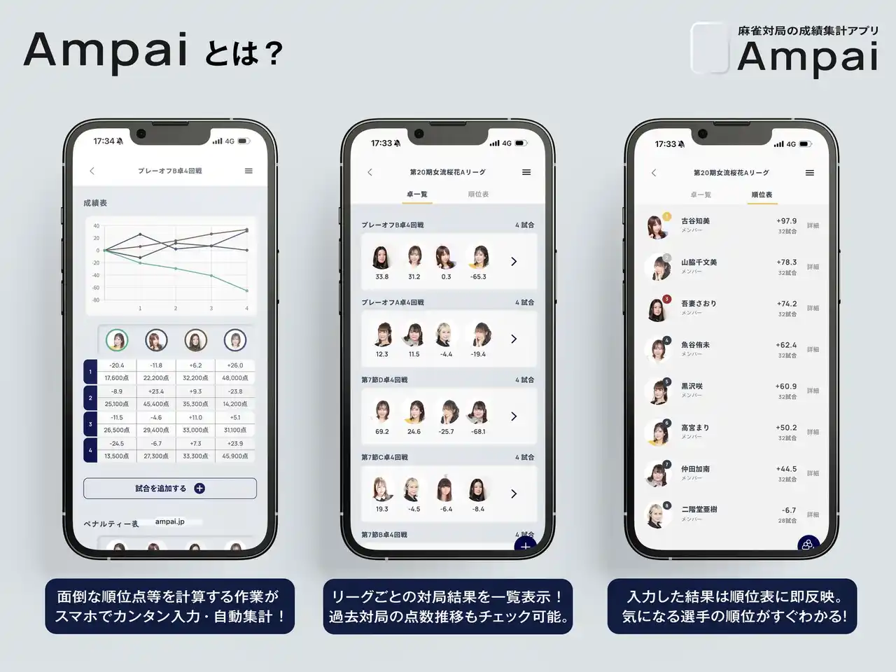 Ampaiによる成績管理は、2026年4月1日の「第43期鳳凰戦A1リーグ第1節A卓」からスタートになります。 |