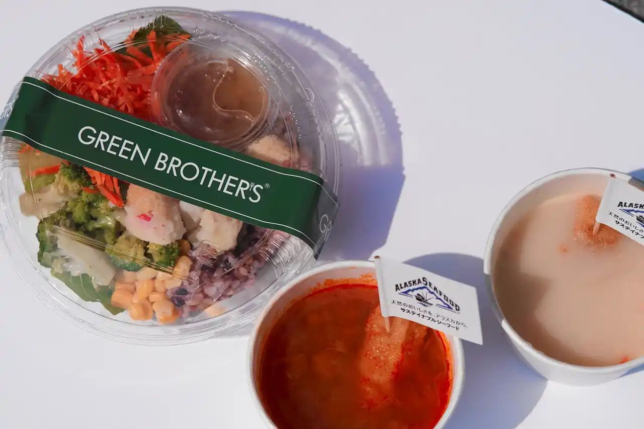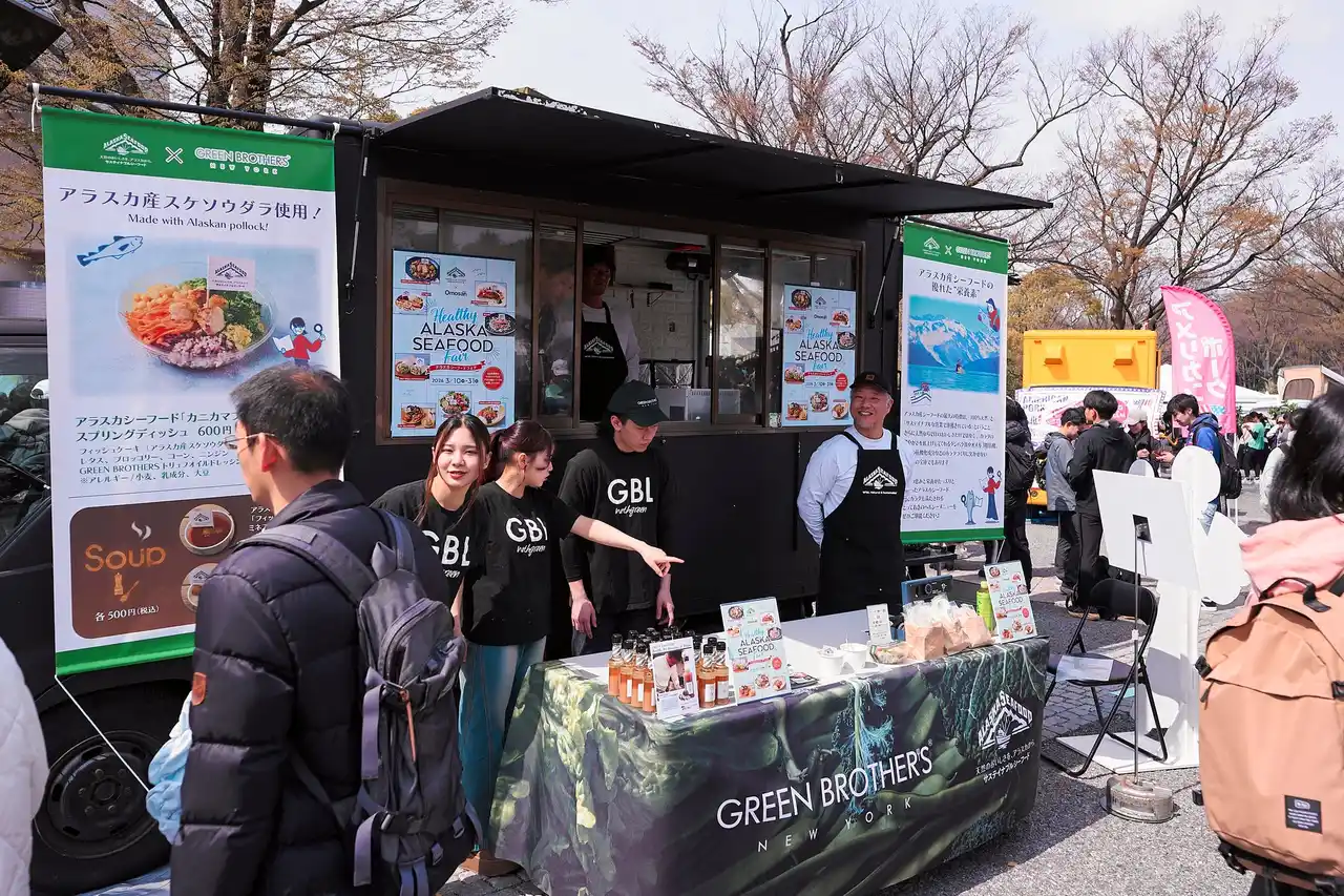 隣接会場のキッチンカーでは、大人気サラダボウル専門店「GREEN BROTHERS」(https://g-brothers.jp/)との特別なコラボレーションが実現しました。会場では、アラスカ産スケソウダラを使用した限定メニュー3品を販売し、運動後の体をケアするヘルシーな食事を求める来場者でにぎわいました。 |