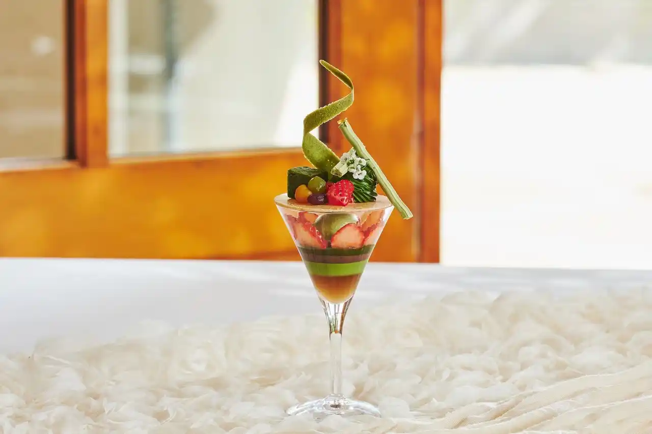 祇園辻利の「抹茶」を贅沢に使用したスイーツとして、濃厚な抹茶ソースにみずみずしい苺や白玉を重ねたグラスデザートや伝統の抹茶を幾層にも重ねた抹茶のオペラ、芳醇な旨みと心地よい苦みがサクサクの生地と重なり合う抹茶のタルトなど、良質な抹茶の薫りを丁寧に閉じ込めた、この季節にしか出逢えない優雅で至福のスイーツをラインナップ。 |