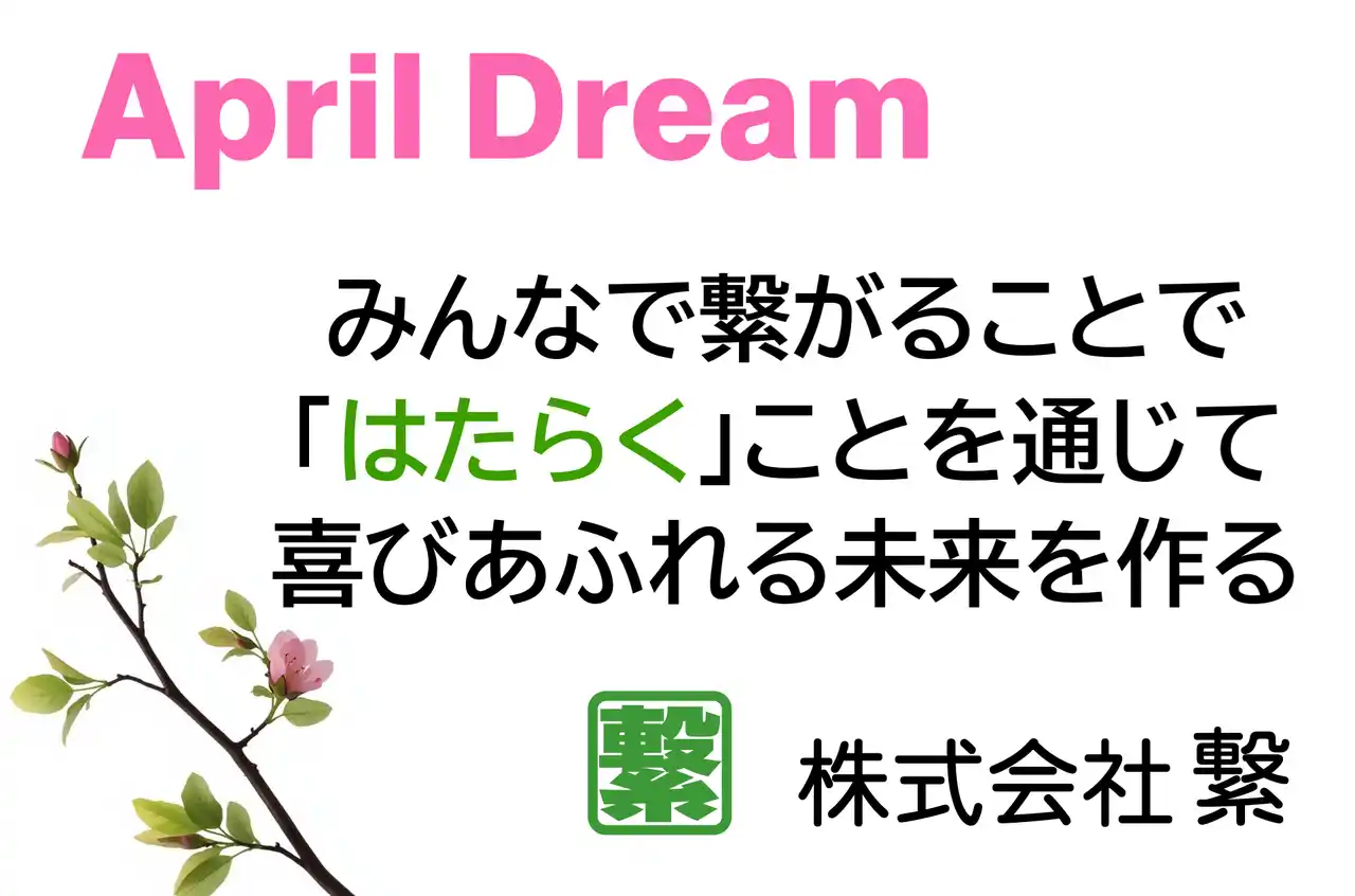 | 株式会社繋(本社:東京都千代田区、代表者:大岩 政博)は、PR TIMESが主催するApril Dream(2026年4月1日)にて、「はたらく」ことを通じて、誰もが自分一人ではたどり着けなかった喜びあふれる未来を得られる社会の実現という夢を発表します。人手不足が深刻化する中、働きたいのに一歩踏み出せない方々も増えています。このような現状に対し、株式会社繋は「スキルや経歴」に加え「経験」や「想い」も価値と見なす支援を実施し、多様な人々が活躍できる環境を推進しています。 | |||
