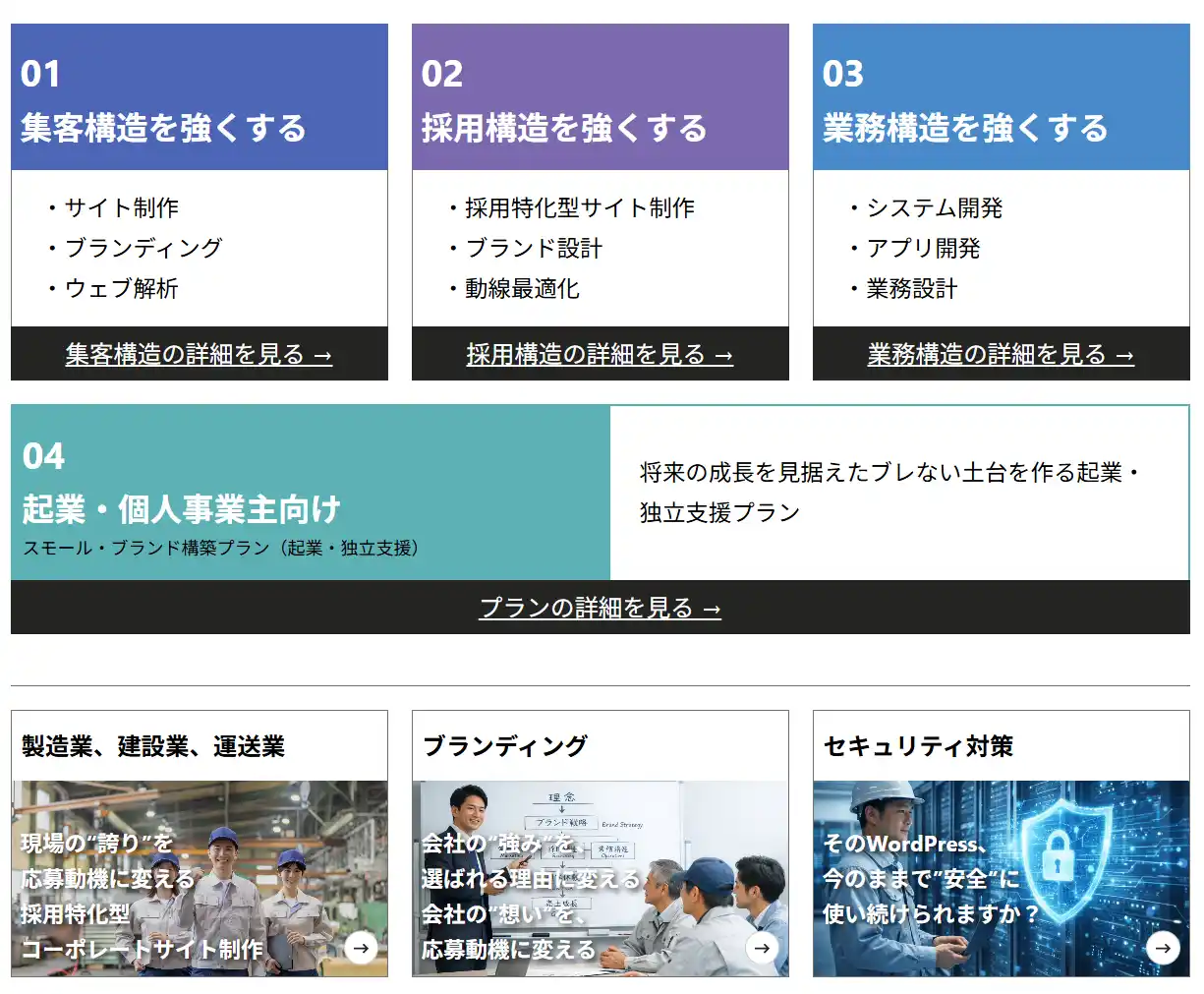 私たちは、単なる「ホームページ制作会社」や「システム開発会社」ではありません。以下の3つの独自ノウハウを融合させることで、顧客のビジネスに確かな「勝機」をもたらします。 |