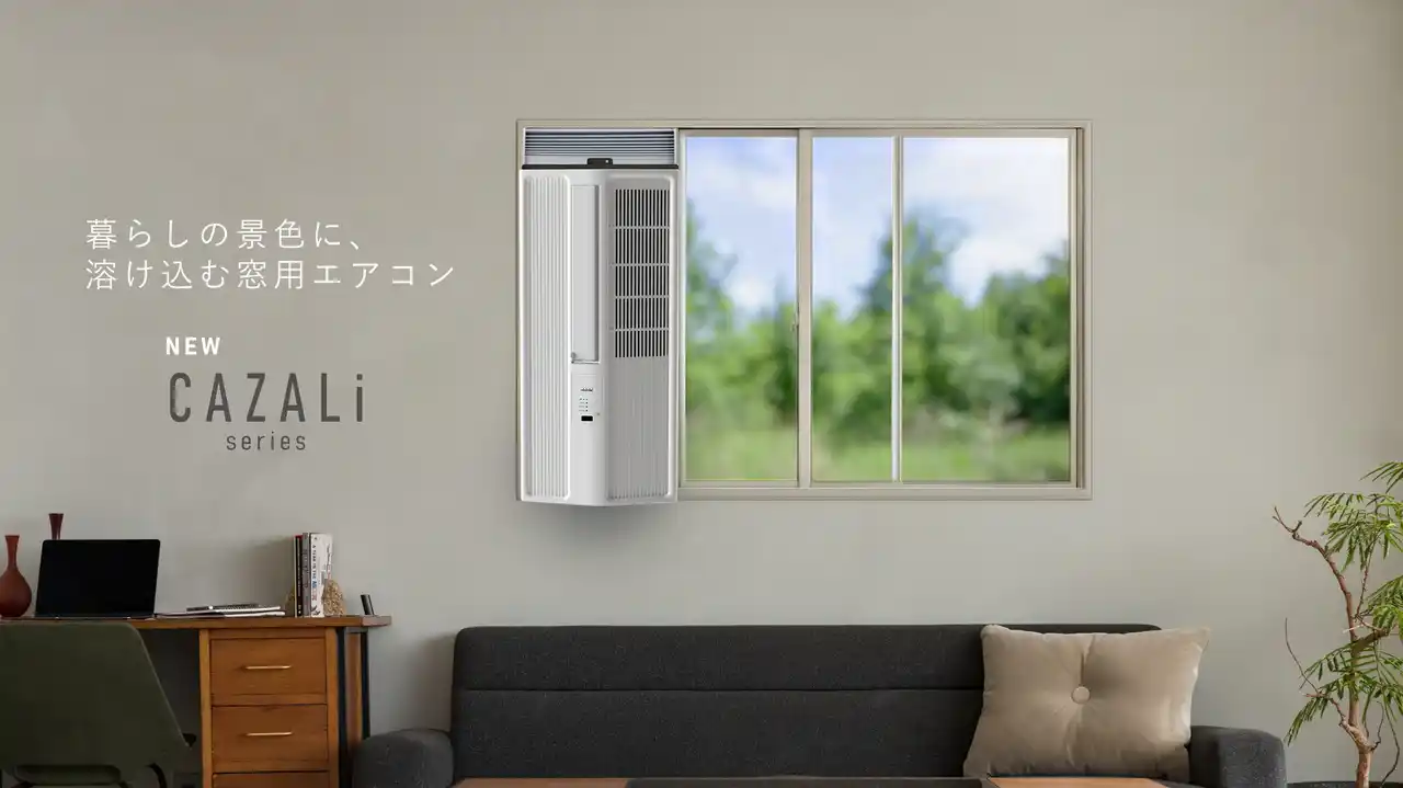 「CAZALi」は、“窓を着飾る”という発想から生まれた新シリーズです。窓用エアコンとして培ってきたセンター吹き出しやお手入れのしやすさといった特長を受け継ぎながら、現代のインテリアに調和するデザインへと刷新。工事不要で設置できる利便性と、住空間に自然と馴染む意匠性を両立し、新しい窓辺のあり方を提案します。 |