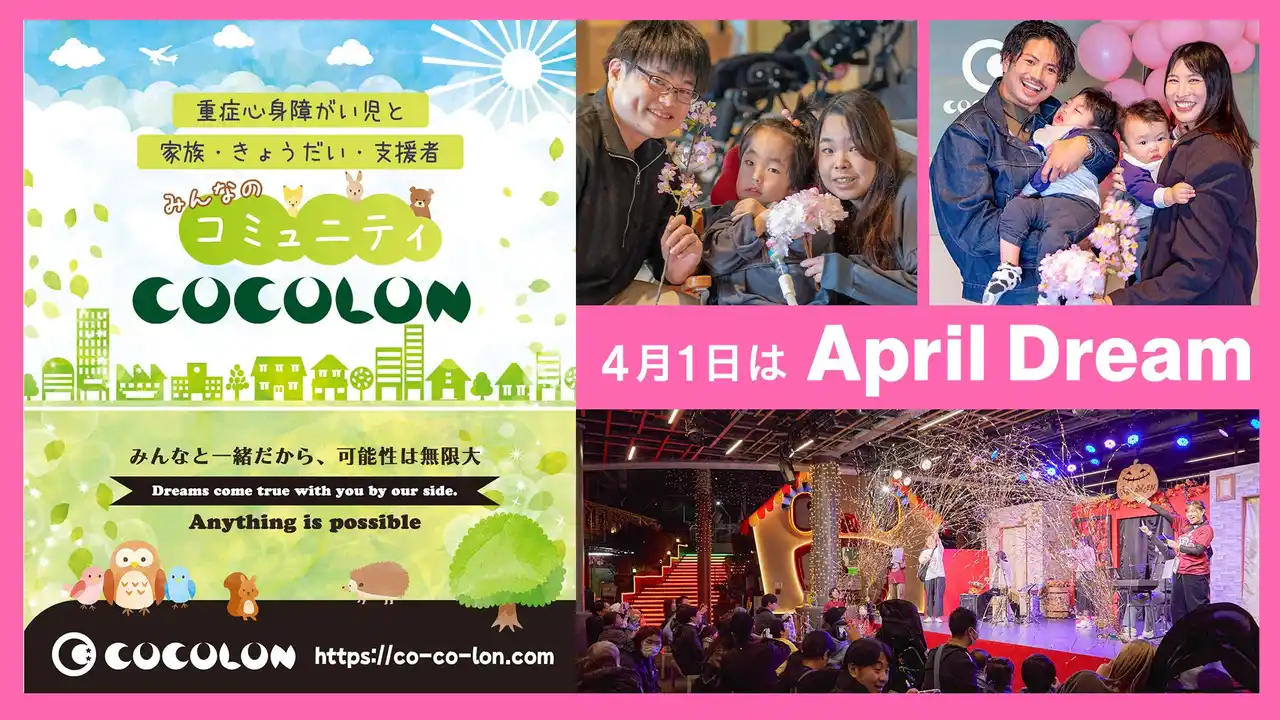 | 特定非営利活動法人EPO(東京都江戸川区、理事長:森えりか)が運営するコミュニティ「COCOLON」は、2026年4月1日、株式会社PR TIMESが実施する「April Dream」プロジェクトに賛同し、「重症心身障がい児と家族に社会参加の機会を届け続ける。」という夢をあらためて表明します。 |