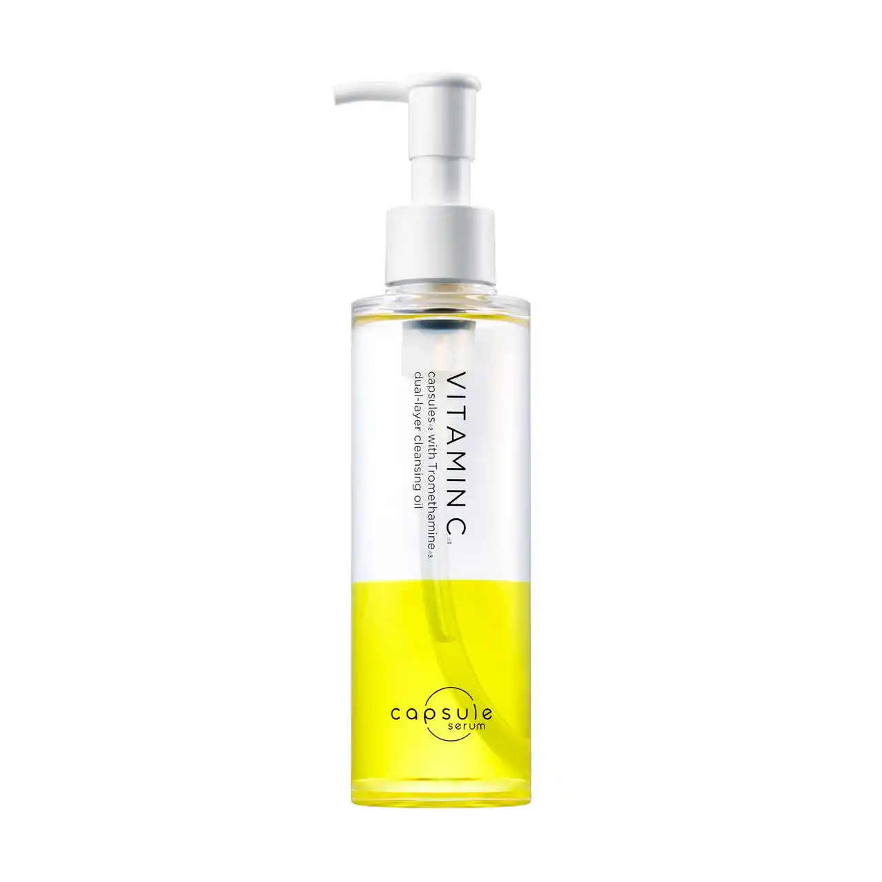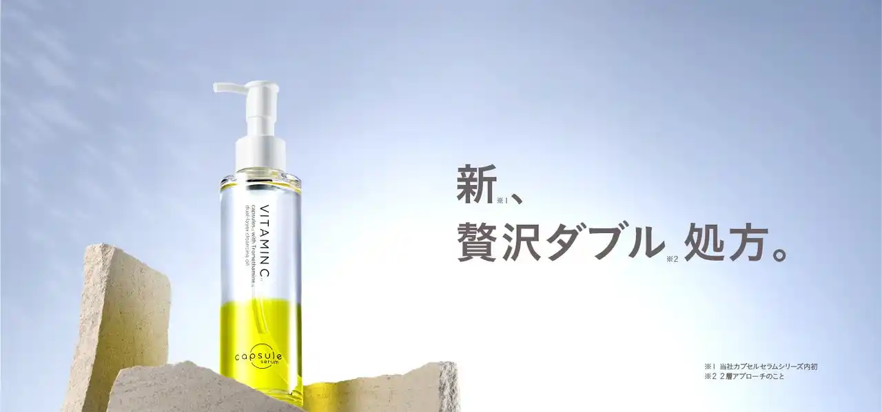 本製品は、これまでのオイルクレンジングでは共存が難しかった水溶性成分「トロメタミン*1」を2層式にすることで同時配合。さらにブランドの象徴である「ビタミンC誘導体*2カプセル*3」を閉じ込めた、見た目も美しい高機能クレンジングです。 |