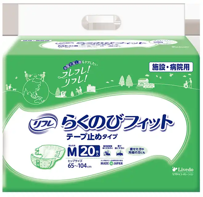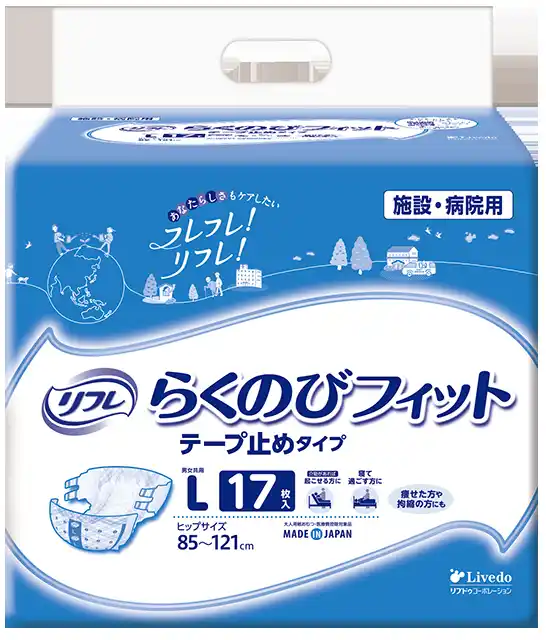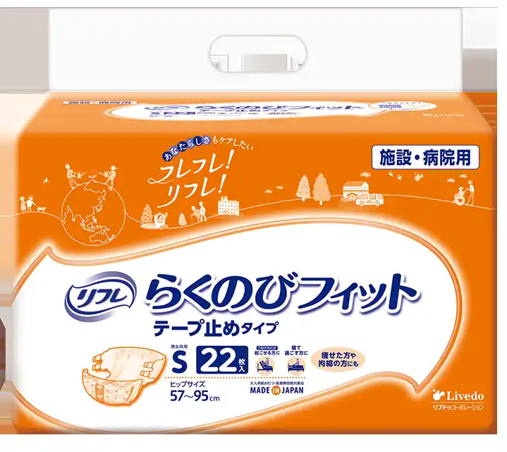 介護現場では、拘縮や体動制限のある方、痩せた方に対して無理のない装着とモレにくさを両立したテープ止めタイプが求められています。 「リフレスマートライン スマートフィット テープ止めタイプ」は、狭いすきまに通しやすく、体に沿ってフィットする構造により、装着時の負担軽減と安定したフィット感でご好評をいただいてきました。 |