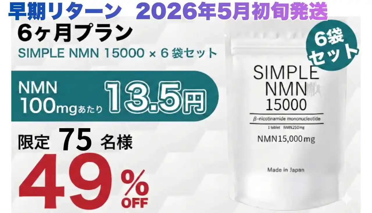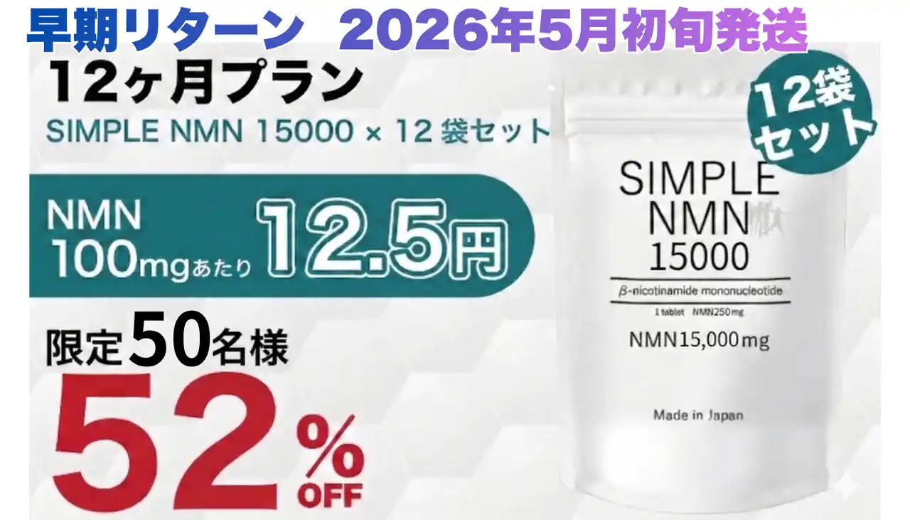 | 合同会社LOTUS企画(東京都八王子市)は、“継続”を軸に設計したNMNサプリメント【SIMPLE NMN 15000】を、応援購入サービス「Makuake」にて展開し、応援購入総額8,306,318円、サポーター516人の支持を集め、2026年1月30日に目標金額を達成のうえプロジェクトを終了いたしました。 | |||
