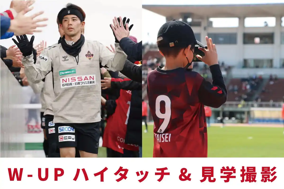 試合開始の約1時間前に、ウォーミングアップに向かう選手とハイタッチができる!さらに、ウォーミングアップ中は専用のエリア(バックスタンド側ピッチレベル)から撮影できる特別なプログラムです。 |